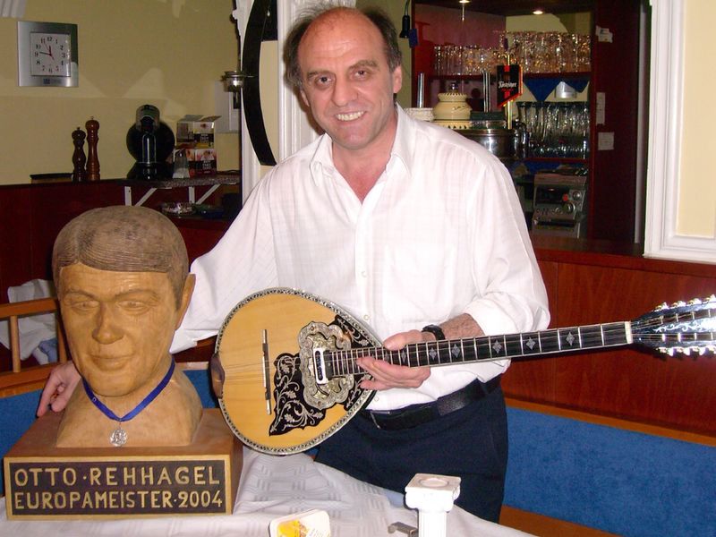 Das Bild rechts zeigt den aus Holz gemachten Otto Rehagel den ich aufgrund einer Wette zur Meisterschaft 2004 selbst geschnitzt habe und meine Buzuki mit der ich gerne auch mal live im Restaurant für Sie spiele! Herzlichst, ihr Dimitris Litakis.